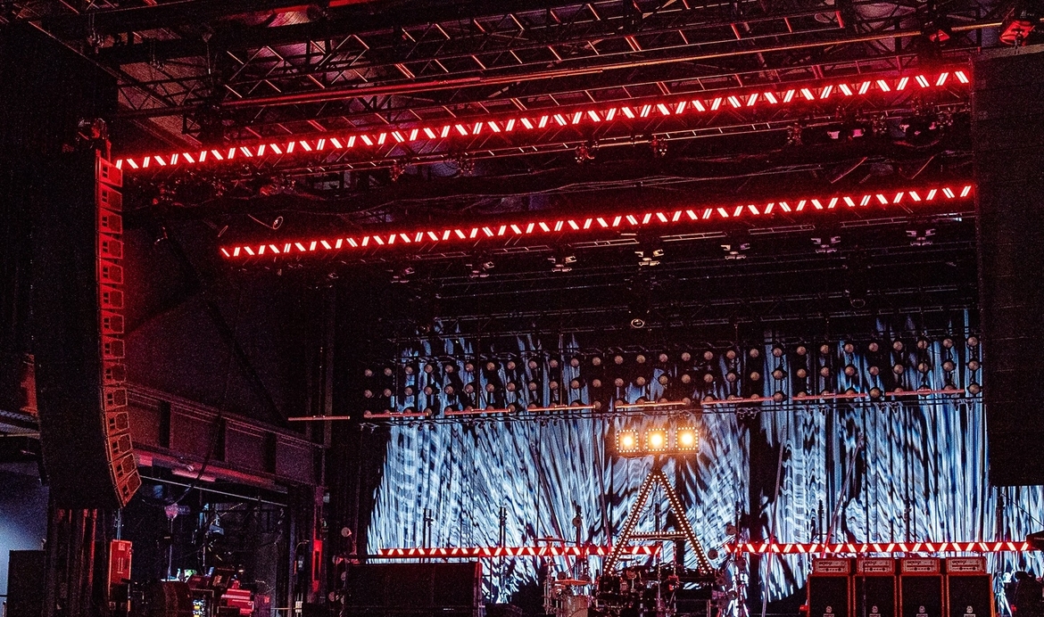 „Wir wollten für die Clubtour mehr mit flächigem Licht arbeiten. Fast alles ist LED-basiert, sodass ich auch jede Menge Einzelpixel-Optionen zur Verfügung habe. So lässt sich auch aus statischem Licht Bewegung generieren, ganz ohne großen Moving-Light-Einsatz. Im Grunde ist dieses Design eine Hommage an die alten, großen Rock’n’Roll-Shows, die mit PAR-Kannen geradezu ausgekleidet waren“, fügt der Designer hinzu.