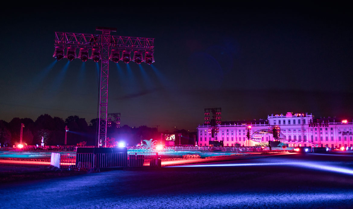 Dennoch sei die Aufgabe nicht zu unterschätzen, wie Appelt erläutert: „Die größte Herausforderung für mich und mein Team besteht im Grunde darin, die verschiedenen Interessen bestmöglich unter einen Hut zu bringen: Da gibt es einerseits das Orchester, das natürlich gut ausgeleuchtet, aber nicht geblendet sein möchte. Zum anderen sind da die Kollegen vom Fernsehen, die lichttechnisch gewisse Kennzahlen benötigen, um mit ihren Kameras alles adäquat abfilmen zu können. Als Spezialaufgabe kommt noch die Beleuchtung des Ambientes hinzu. Wir inszenieren hier die komplette Parkseite des Schlosses bis zum Neptunbrunnen und zusätzlich die Gloriette. Ein ziemlich großes Areal, das lichttechnisch gestaltet werden möchte. Zu guter Letzt soll das Lichtdesign als Ganzes natürlich auch die Darbietung auf der Bühne unterstützen und die Stimmungen der Musikstücke visuell transportieren.“