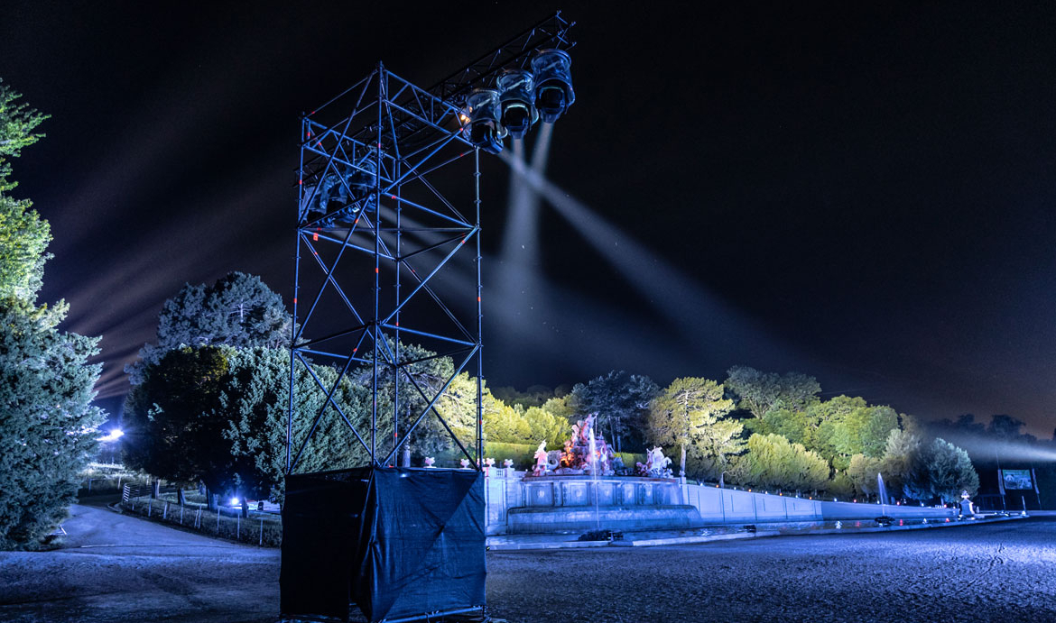 Die zwölf Martin MAC Ultra Wash wurden auf der Neptunbrunnenseite des Schlossparks an zwei Towern installiert, von wo aus sie den angrenzenden Park in Szene setzen. „Bäume beleuchten klingt jetzt vielleicht erstmal wenig spektakulär“, lacht der Designer, „aber auch hier ist eine hohe Intensität gefragt, und die MAC Ultra Wash konnten ihren Helligkeitsvorteil klar zur Geltung bringen. Mit der CTO-Korrektur konnten wir zudem die gewünschten Weißlichtnuancen fein herausarbeiten.“