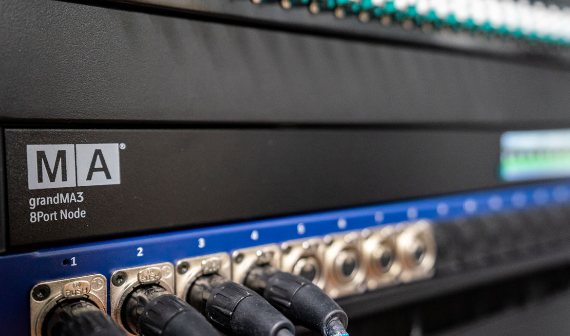 „Im Vergleich zu den meisten Theatern arbeiten wir nur mit Zugstangen und Punktzügen, also ohne Oberlichter“, so Adam weiter. „Dadurch können wir jedem Lichtdesigner ein individuelles Setup einrichten, vor allem für Entertainment-Veranstaltungen.“ Da das Haus kein eigenes Ensemble unterhält, sind die meisten Veranstaltungen Gast- und Festspiele, lediglich eine bzw. zwei Opern pro Jahr werden in Eigenregie produziert. Neben wechselnden Beleuchtungs-Setups bietet die neue Netzwerkinfrastruktur aus sACN und MA-Net 3 auch signaltechnisch größtmögliche Flexibilität für externe Lichttechnik-Teams, wenn diese mit eigenen Lichtpulten anreisen. „Unsere Gäste werden über den sACN-Input der grandMA3 in das MA-Net 3 eingebunden und können so sämtliches Nodes im Haus nutzen.“