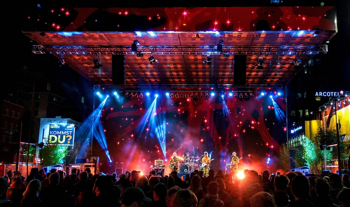 Mit der Integration der Exterior Linear LED-Bars vervollständigte pilot Screentime im November 2022 den zweiten Modernisierungsabschnitt der Spielbudenplatz-Bühne. Bereits im Sommer 2021 installierte der Dienstleister eine 138 m2 große LED-Wand mit rund 3,5 Millionen Pixeln als Backwall, die dank Autodimmungssystem für die festgelegte Einhaltung von Lichtemissionsauflagen sorgt. Der Grund: Neben Konzerten, Events und Live-Übertragungen wird die LED-Fläche auch für die dauerhafte Bespielung mit Werbeinhalten genutzt.