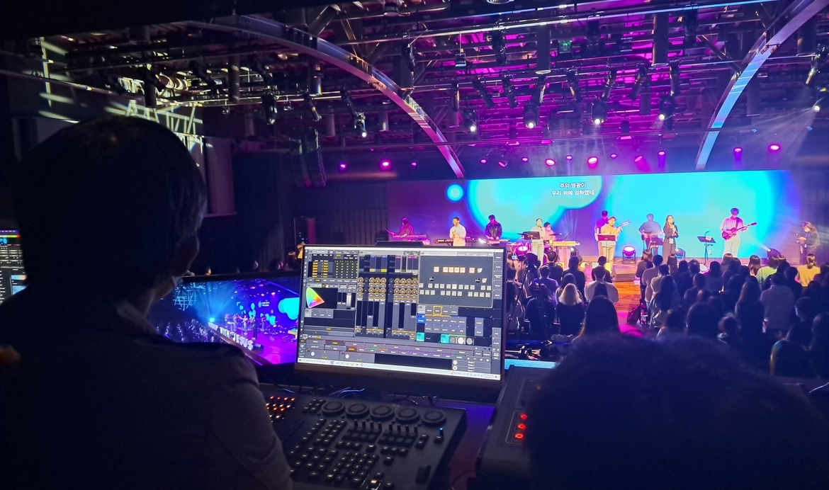 The new grandMA3 onPC command wing is now installed in the Glory Hall, located on the sixth floor of the expansive Seongnam campus. This particular venue has a lively focus on youth programs.