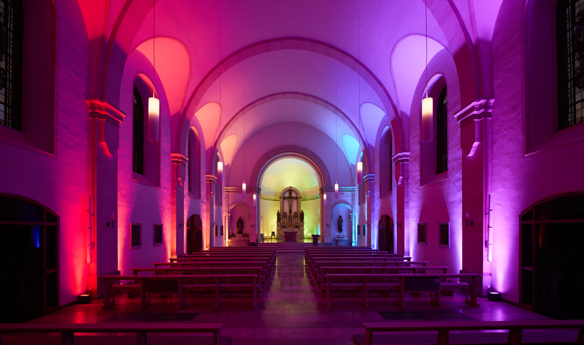 Ein Kirchenschiff, dessen Farbstimmung sich den unterschiedlichsten Anlässen anpassen lässt – von ruhiger Besinnlichkeit bis hin zu feierlicher Freude. Dieses Erlebnis bietet die neu gestaltete Kirche St. Laurentius im nordrhein-westfälischen Westerwiehe. Hier werden kirchliche Zeremonien von nun an mit einer eindrucksvollen Illumination bereichert.