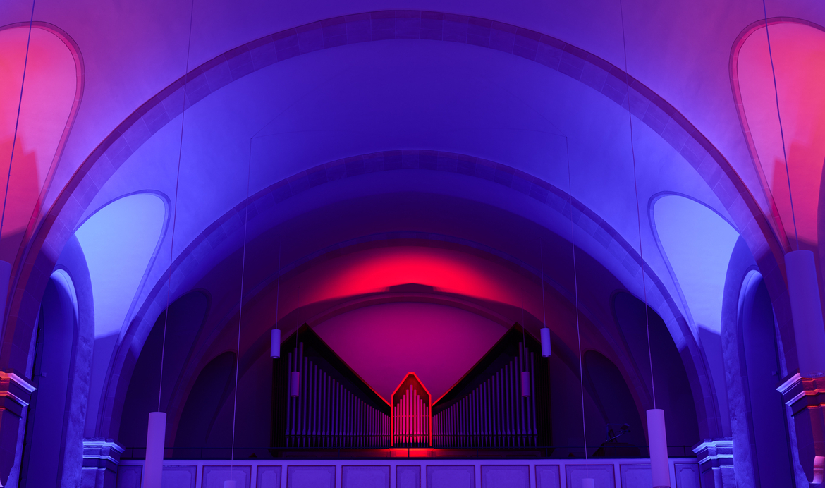 „Unsere Aufgabenstellung lautete, die Kirche in eine ‚Lichterkirche‘ zu verwandeln“, erläutert Projektleiter Jan Wöhning vom Ingenieurbüro Schröder & Partner die Anforderungen an das Projekt. „Dafür sollten die neuen Scheinwerfer DMX steuerbar sein und besonders kraftvolle Farben liefern“, fährt er fort. Die Kirchenarchitektur stellte das Planungsbüro dabei vor besondere Herausforderungen, so Wöhning weiter: „Die Kirche besitzt sehr hohe Decken und große Fenster, durch die viel Tageslicht fällt. Da die Lichtinstallation auch tagsüber genutzt werden sollte, mussten wir sowohl die passenden Fluter als auch die geeigneten Positionen finden. Hier konnten wir gemeinsam mit Lightpower detaillierte Bemusterungen mit dem Kunden vor Ort vornehmen, um so die perfekte Lösung zu finden.“