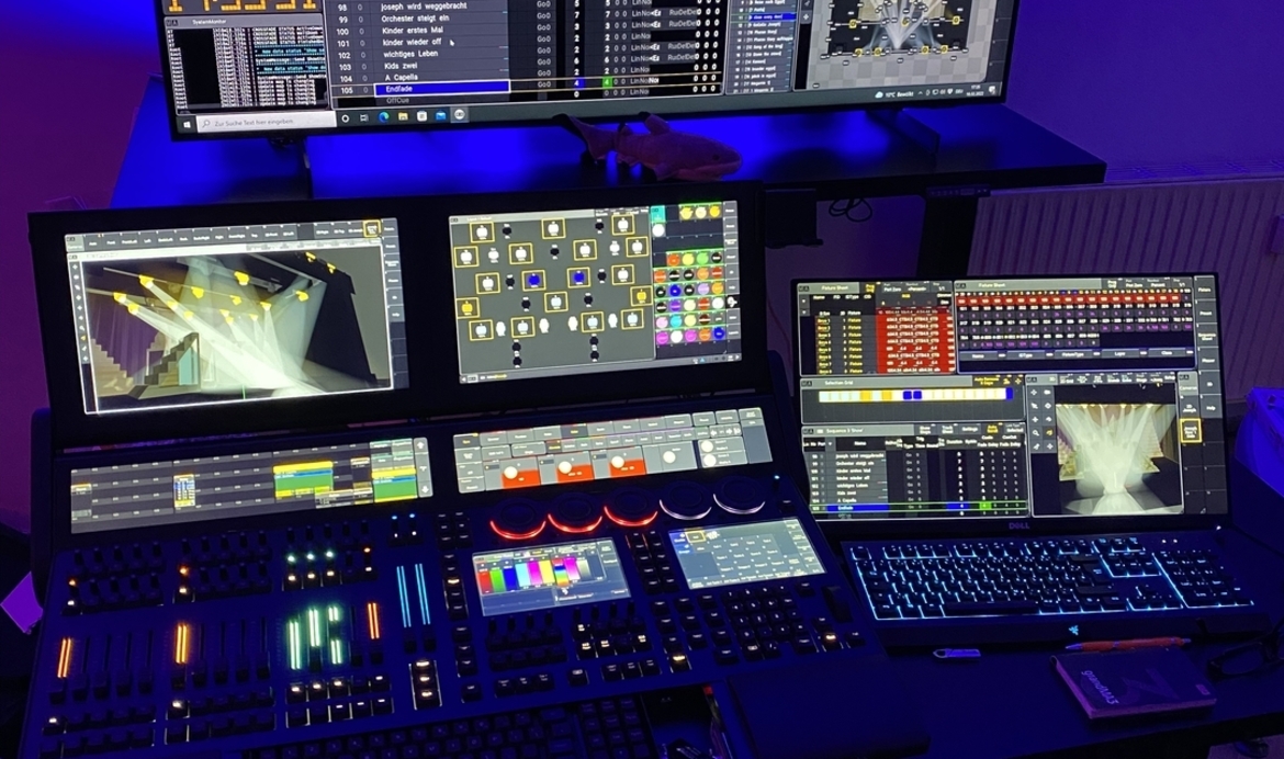 Das Setup für „Joseph and the amazing technicolor dreamcoat“ im Stadtsaal Mistelbach umfasste eine grandMA3 light, eine grandMA3 compact und drei grandMA3 4Port Nodes an den zentralen Signalschnittstellen im Saal. Für Jürgen Erntl markierte das Musical nicht nur einen weiteren künstlerischen Höhepunkt, sondern auch den Umstieg von der 2er- auf die 3er-Software: „Den Ausschlag hierfür gab die Vorvisualisierung der Show in Vectorworks und die Neugierde, eine Musicalproduktion in der neuen Software zu programmieren.“