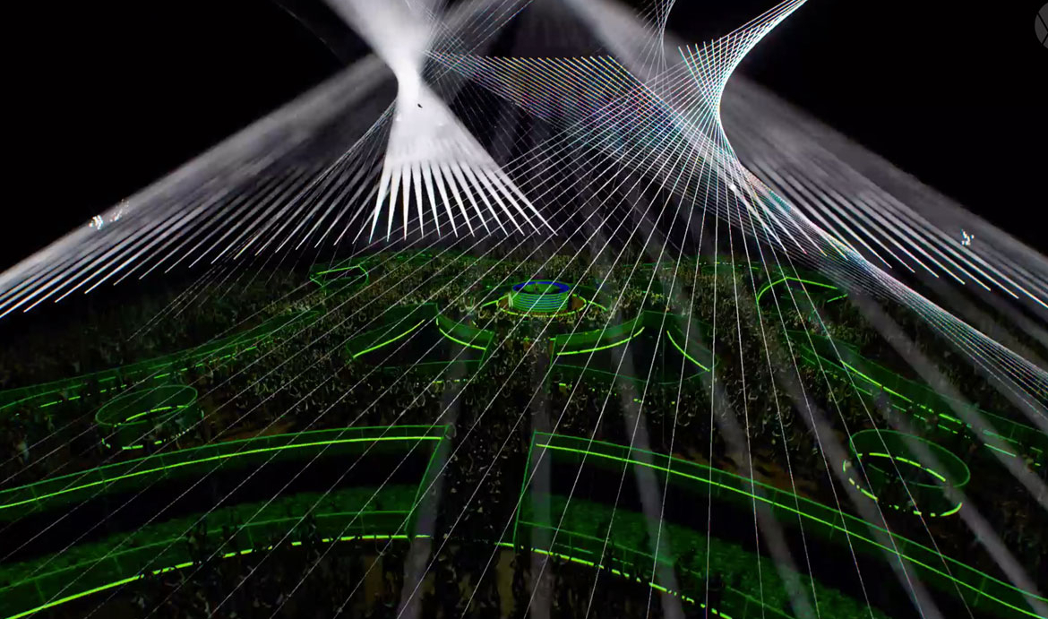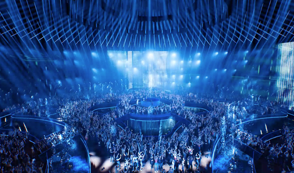 Die gesamte Designarbeit sowie die Produktion ist seitens X4 realisiert worden. 19 virtuelle Kameras lieferten den Input für den Videoschnitt mit einem Final Cut Multicam-System. Virtuelle Charaktere wie der Roboter Marvin wurden geriggt und animiert, und, um etwas echtes Leben in die Show hineinzubringen, wurde die Moderatorin und DJane Laura im eigenen Studio beleuchtet, gefilmt und in das Video integriert. Auch ein virtuelles, animiertes Publikum ergänzten die Designer. Zudem wurden auch die Musik und das Sounddesign durch X4 komponiert und produziert. Eine grandMA3 compact XT mit zwei grandMA3 processing unit XL und 28.723 Parametern war im Einsatz, um dieses Projekt zu realisieren.